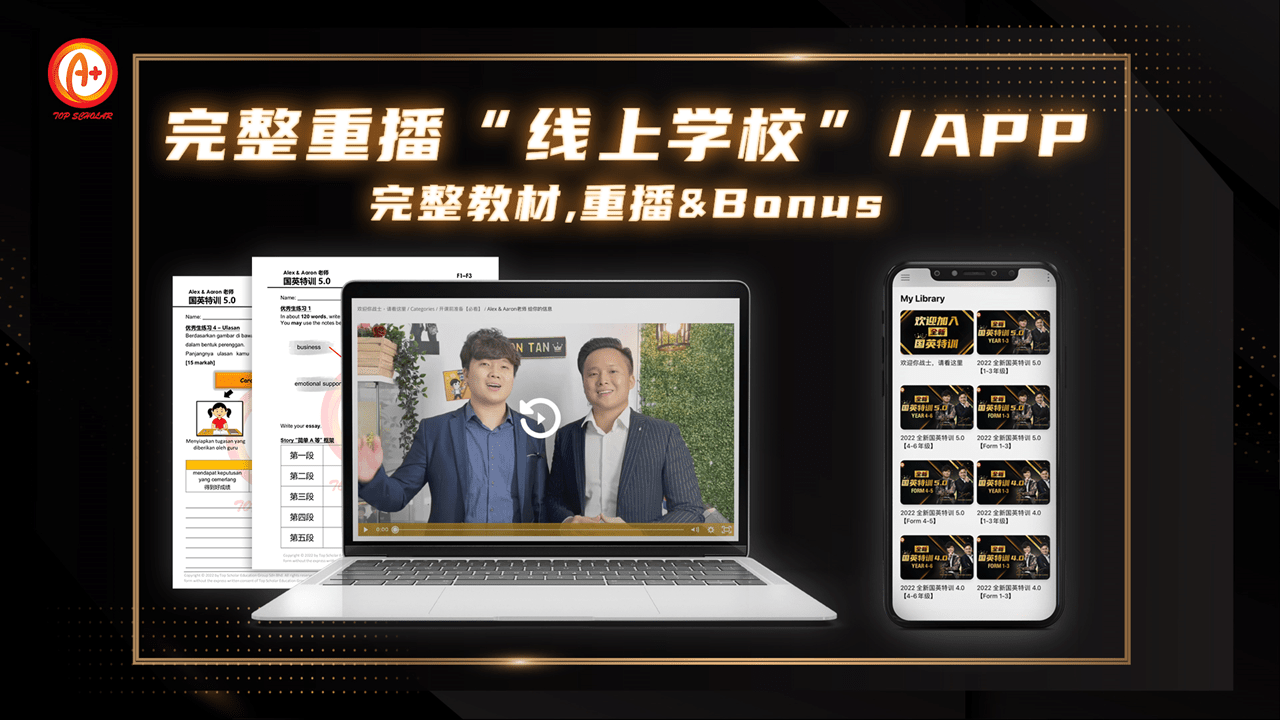 Bonus 9:国英特训2年精选教材+重播(价值RM7000)