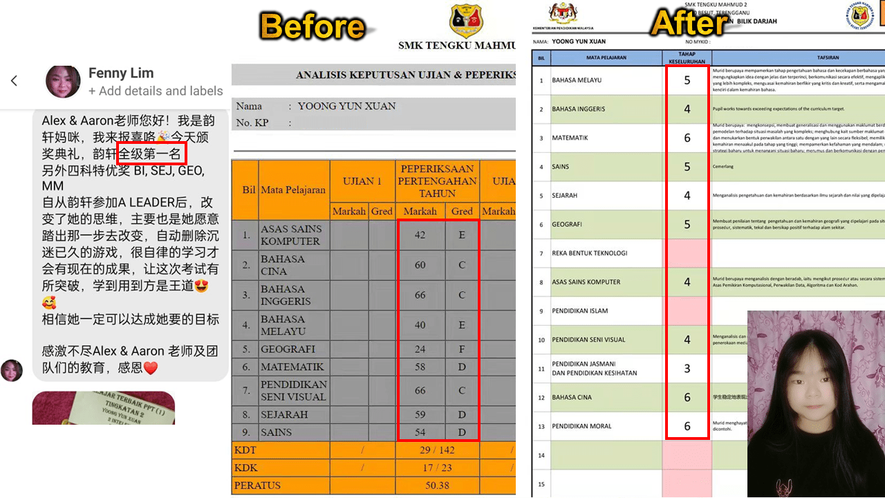 她如何从上中学成绩不及格 到国英进步 成为全级第一?